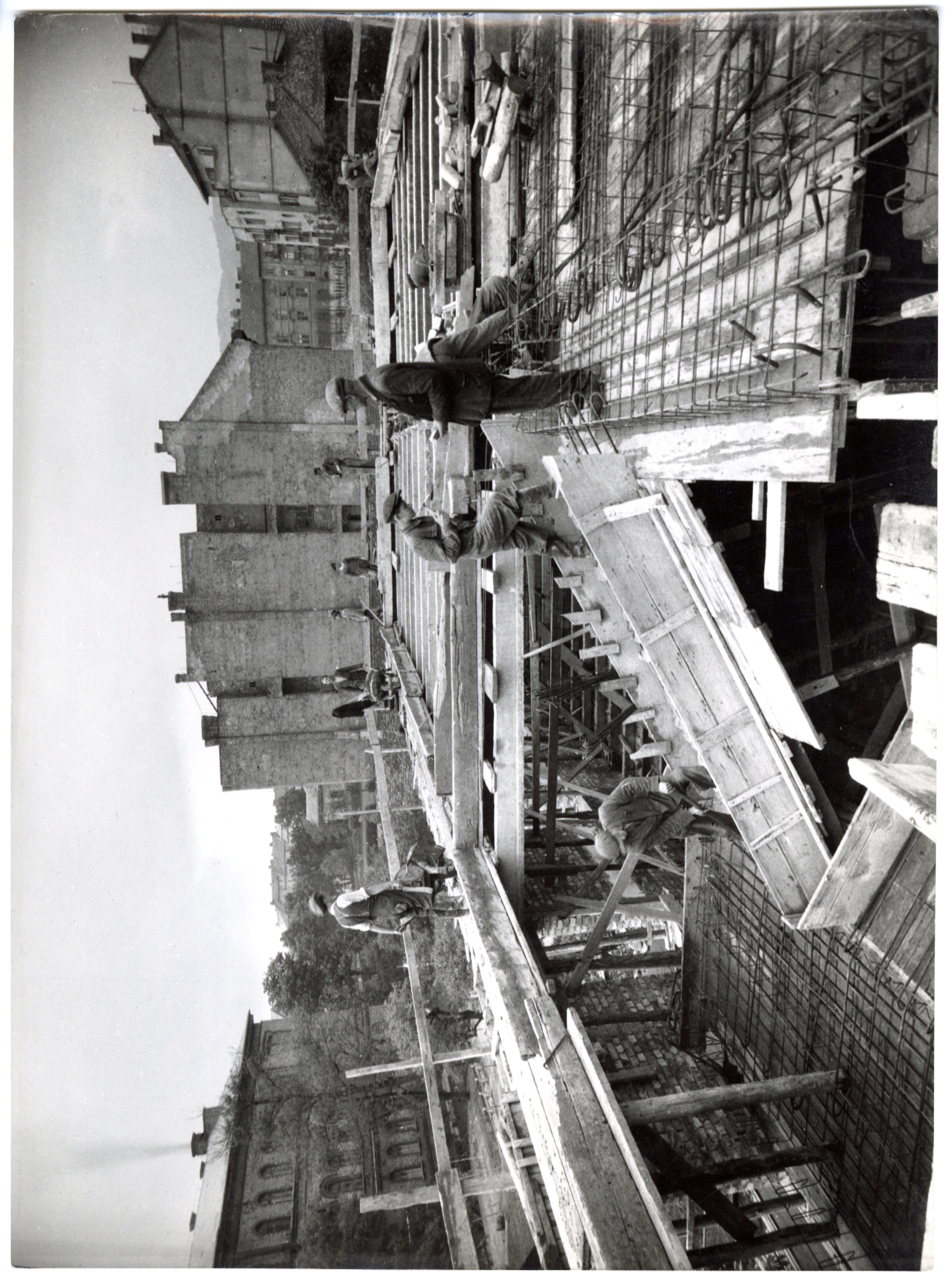 A tornacsarnok építkezése 1954 tavaszán