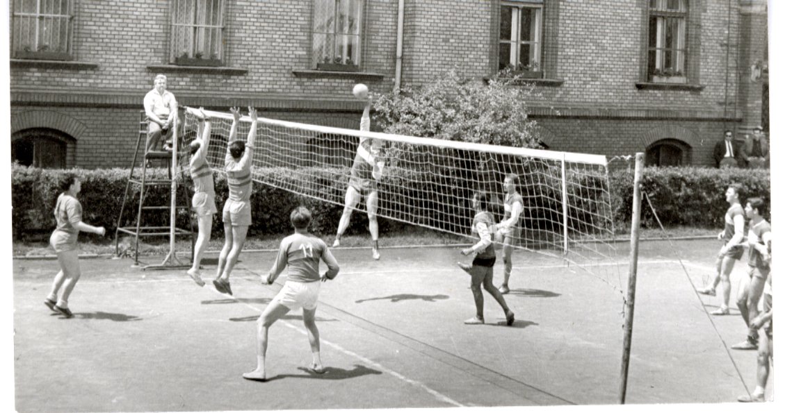 Férfi röplabda mérkőzés az udvari pályán