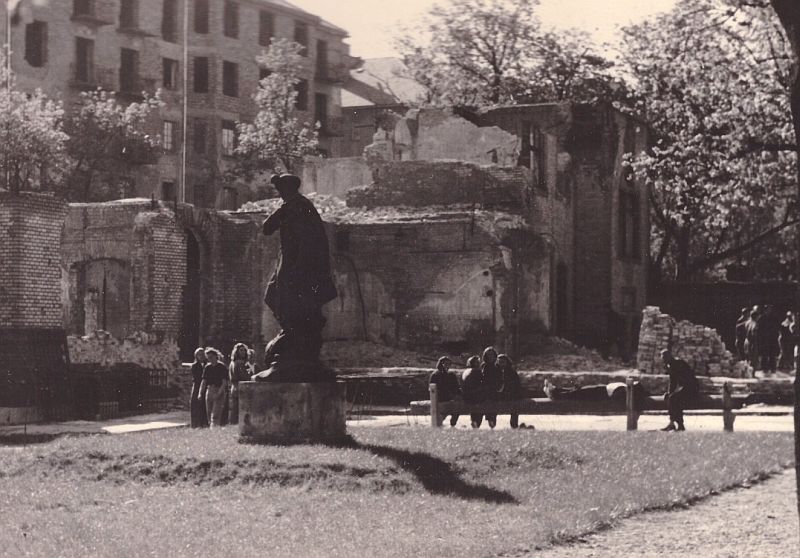A Győri úti kert a Toldi-szoborral 1945 (TE Képgyűjtemény)