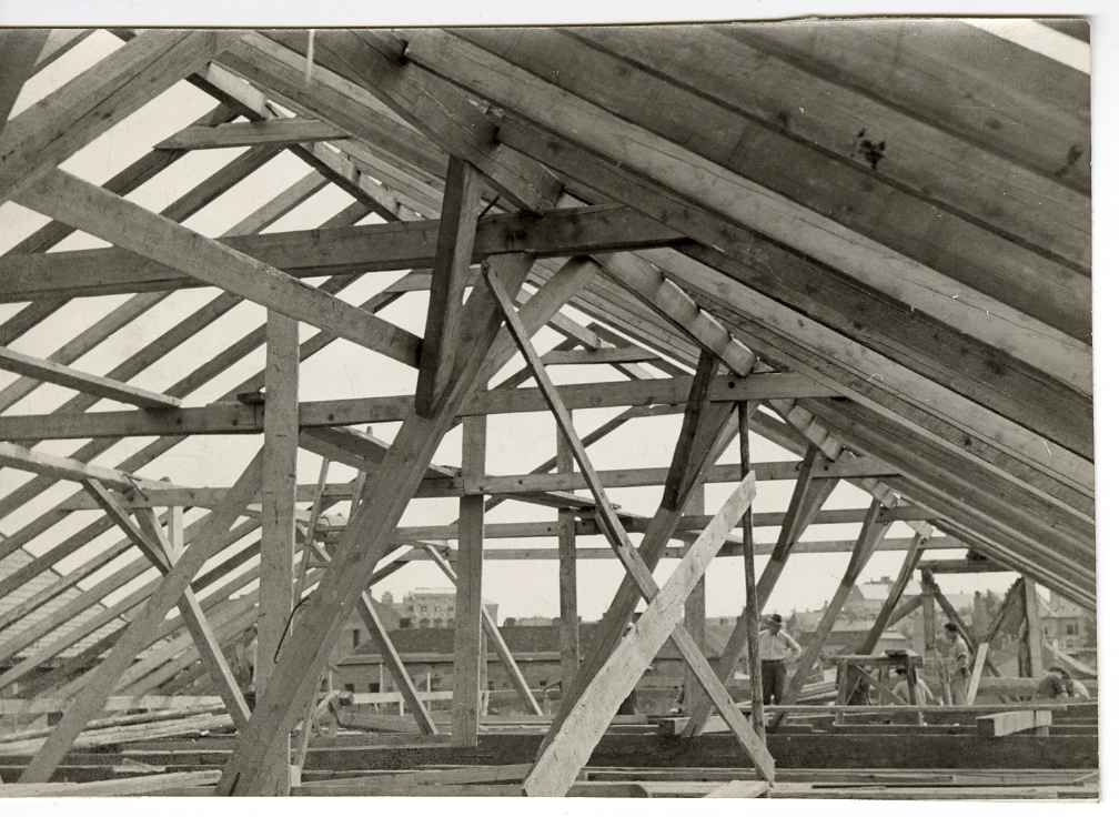 Fiú kollégium építése, tetőszerkezet belülről