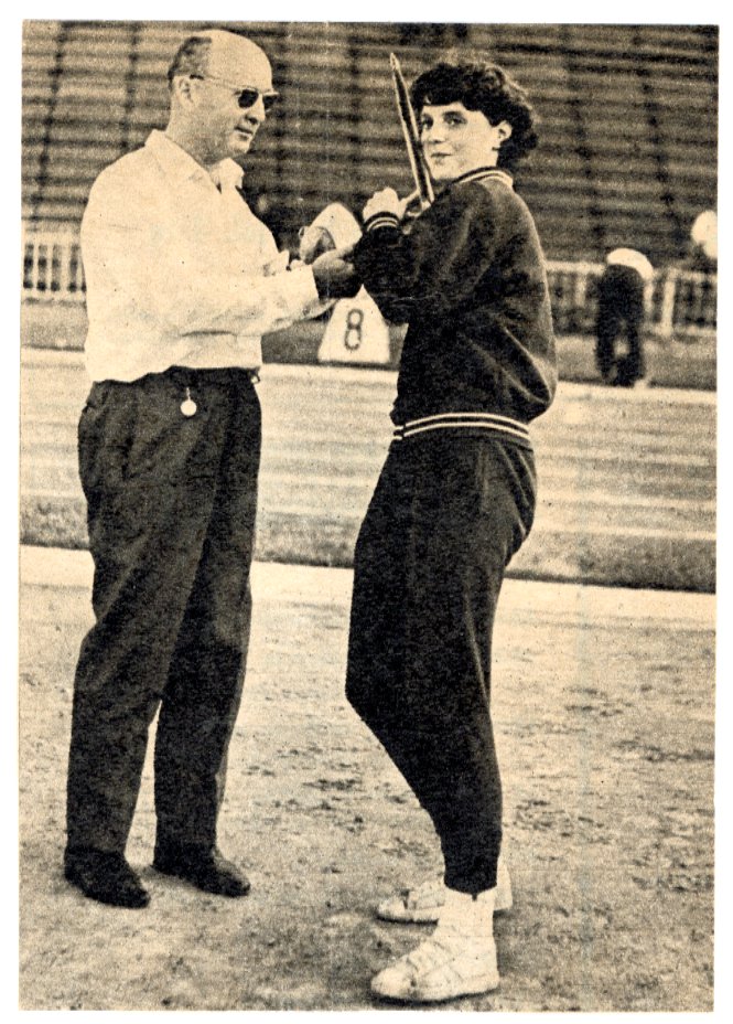 Gerelyhajítás gyakorlat: Koltai Jenő és Németh Angéla