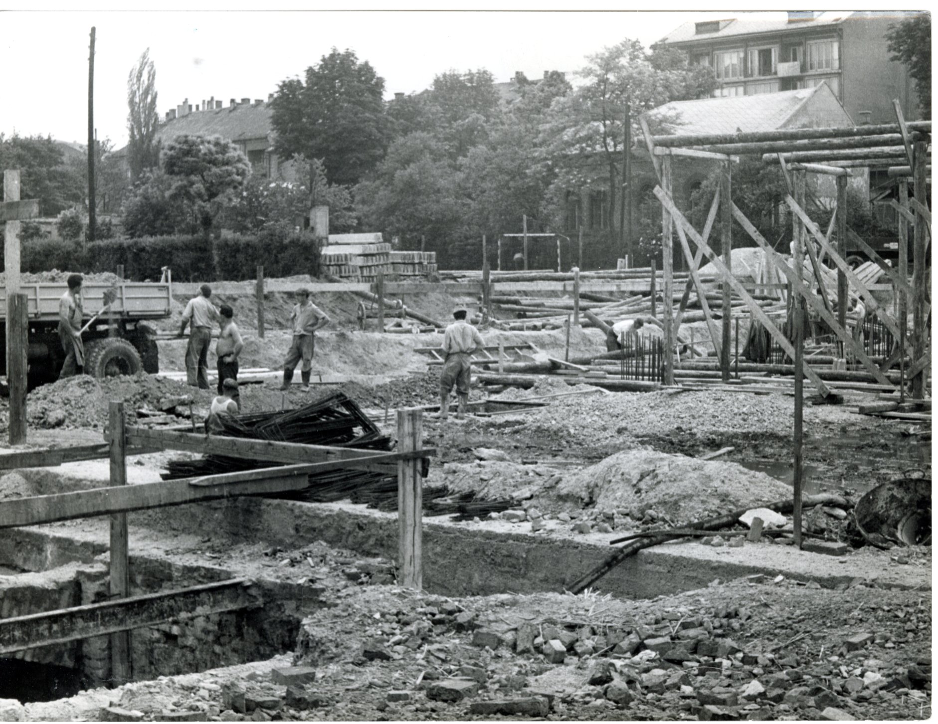 Uszoda építkezés. Előtérben a 16-os ház pince része