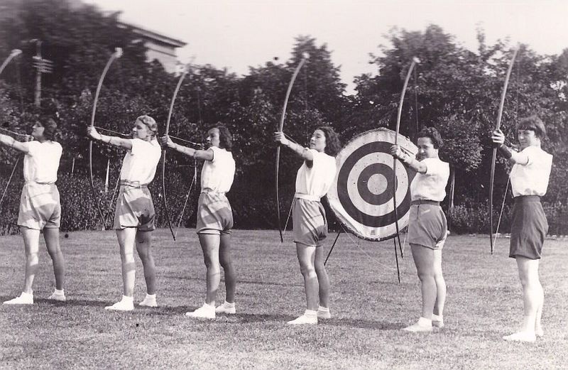Íjászat gyakorlása az 1927/28. tanévben (TE Képgyűjtemény)
