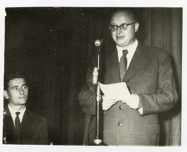 Kerezsi Endre előad, mellette Tarnawa Ferdinánd