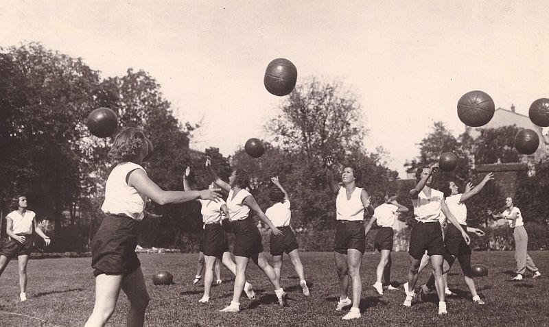 Női szabadtéri torna medicinlabdával (TE Képgyűjtemény)