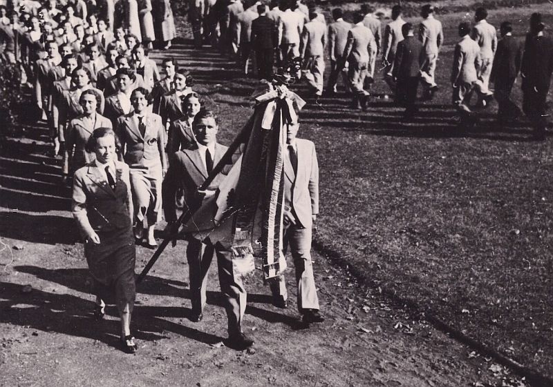 Ünnepi menet zászlóval (TE Képgyűjtemény)